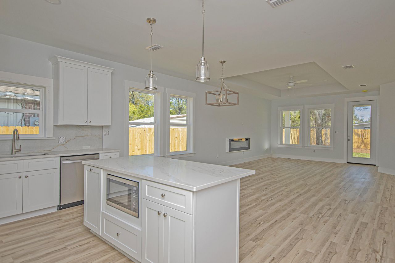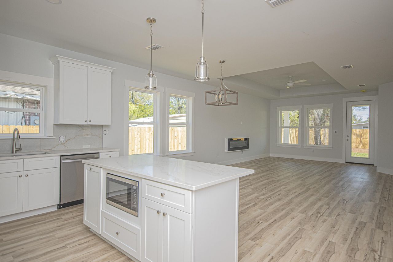 Step into this semi-custom home beautifully designed with plenty of upgrades. Let's start outside. This home greets you with hardi siding, impact windows and doors, metal roof (all for discounted insurance rates), cornered back patio, sodded yard with irrigation, privacy fenced back yard, and paver driveway round out the outside. As for the inside, let's start with the kitchen, white shaker style cabinets with crown molding, built-in microwave in island, a gas stove with stainless steel vent hood (venting to the outside), full-size refrigerator with water & ice in the door, dishwasher, garbage disposal, all under gorgeous quartz countertops....read more