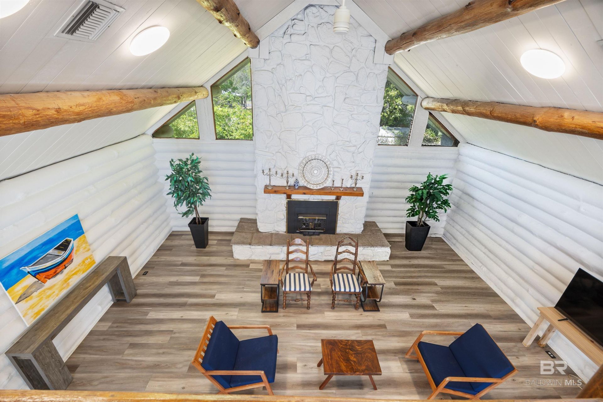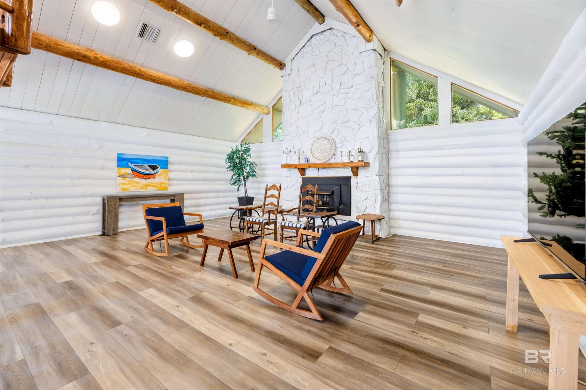 Luxurious Coastal Charm- Prepare to be dazzled with this stunning log cabin retreat, tucked away in the highly sought-after Spanish Cove subdivision! From the moment you step inside, you'll say WOW! & be captivated by the soaring vaulted ceiling, impressive fireplace, & expansive living spaces highlighted by beautiful flooring that creates seamless elegance throughout. This extraordinary property offers unmatched versatility with a completely separate private living space?featuring 2 bedrooms, 2 bathrooms, a full kitchen, & a comfortable living area?great for guests or multi-generational living. Upstairs, additional living space awaits with...read more